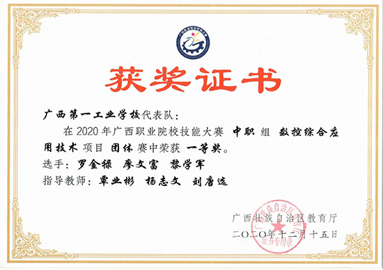 (文/黎德钦 曾 艳 黄科大 图/何勇群 丁 成)近日,广西第一工业学校2018级数控技术应用专业毕业生廖文富在2022年全国职业院校技能大赛(高职组)复杂部件数控多轴联动加工技术赛项中荣获团体一等奖,2018级计算机应用(平面设计)专业毕业生梁健勇荣获电子产品芯片级检测维修与数据恢复赛项团体二等奖。