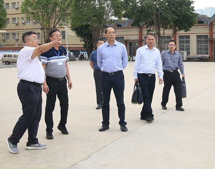 4月24日,自治区应急厅党委书记、厅长张惠强率调研组深入广西第一工业学校调研指导工作,学校领导班子陪同。