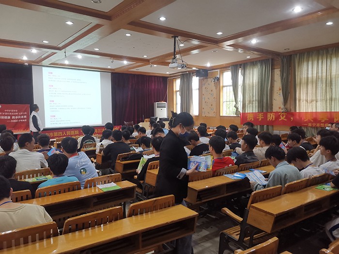(文/陈 路 图/唐香萍 韦 燕)近日,广西第一工业学校邀请南宁市第四人民医院专家,到校开展健康知识讲座。讲座以“现场+直播”的方式进行,近100名学生在第二多媒体教室现场聆听,各班级学生在教室观看讲座直播。