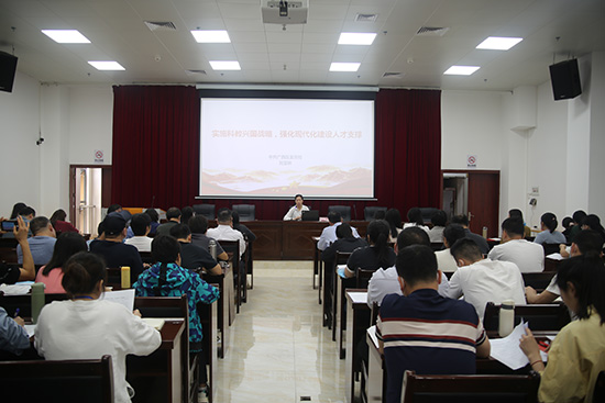 会议还邀请了中共广西区委党校副教授刘亚娟宣讲党的二十大精神。刘亚娟副教授以《实施科教兴国战略,强化现代化建设人才支撑》为题,阐述了教育、科技、人才对全面建设社会主义现代化国家的基础性、战略性支撑作用,阐释三者服务于社会主义现代化国家建设的战略部署、战略举措。她表示,党的二十大对教育、科技、人才协同推进现代化建设作出全面部署,办好人民满意的教育、完善科技创新体系、加快实施创新驱动发展战略、深入实施人才强国战略。她强调,要以教育、科技、人才塑造广西发展新动能新优势。